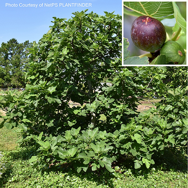 Ficus 'Brown Turkey' is commonly referred to as Brown Turkey Fig. It is a cold hardy, multi-stemmed, woody, deciduous shrub with edible fruits. Figs are produced without pollinators. It can quickly grow to a mature size of 10-20 feet tall with an equal spread.