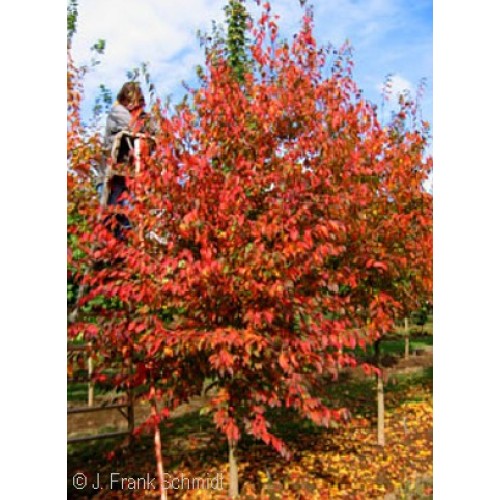 The Native Flame® American Hornbeam is noteworthy for its fire engine red fall color display and its superb, upright growth. This tough, slow-growing, deciduous shade tree has an upright, oval habit that matures at 30' tall and 20' wide.