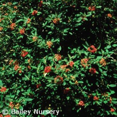 Viburnum x rhytidophylloides 'Alleghany' is commonly referred to as Allegheny Viburnum. It was introduced in 1966 by the National Arboretum resulting from a cross between Viburnum rhytidophyllum and Viburnum lantana 'Mohican'. It is an upright, very dense, semi-evergreen shrub with leathery, deep green leaves and fragrant white flower clusters in spring followed by attractive red berries that mature to black.