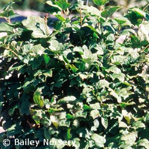 Viburnum opulus 'Nanum' is commonly referred to as Dwarf European Cranberrybush. It is a highbush cranberry which is not really a cranberry at all. Nanum Cranberrybush has a dwarf, low-growing, dense, mounding habit typically maturing to 2-3 feet tall with a similar spread. It usually does not flower or fruit. It has attractive, three-lobed, maple-like, dark green leaves that turn reddish purple in fall.