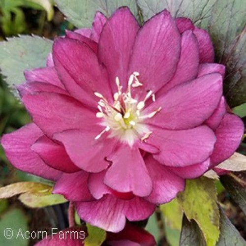 Large 3" double maroon flowers with a darker picotee edge bloom in late winter/early spring. Evergreen foliage grows 18-24" and is perfect for naturalizing in moist, woodland areas. Part of the WEDDING PARTY™ Series.