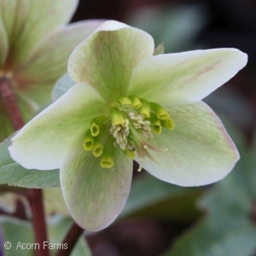 Helleborus 'Walhelivor' Ivory Prince PP16199 is commonly known as Ivory Prince Lenten Rose. This easy to grow hybrid Lenten Rose features burgundy-pink blooms that open to ivory-white petals blushed with rose and chartreuse. This variety was designed for its vigorous growth, upright form and flatness of flowers. Deer and rabbits tend to avoid Helleborus. They thrive in a partially shady environment in organically rich, moist, well-drained soil.
