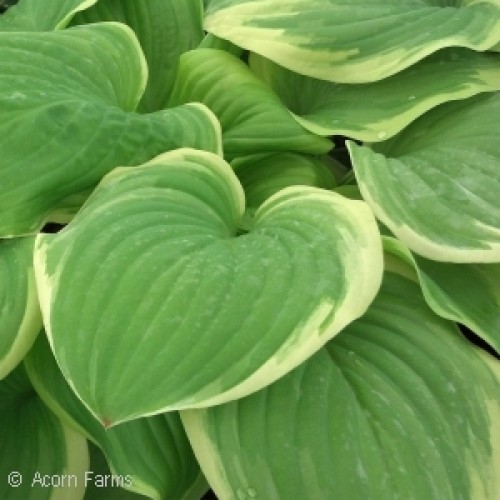 Medium-sized hosta whose apple green leaves have creamy-white margins. Large, funnel shaped fragrant flowers.