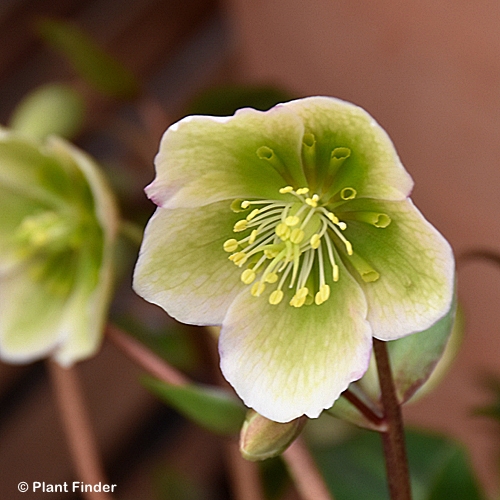 Helleborus x sahinii 'Winterbells' PP24,434 is more commonly known as Winterbells Lenten Rose. This attractive clump-forming, upright perennial features white flowers with a light pink tint that face downwards, surrounded by dark green, deeply lobed leathery, semi-evergreen foliage. It flowers freely from late winter to spring and occasionally in summer.