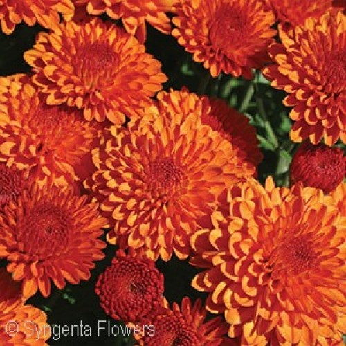 Decorative Form. Mid Season -- A nice medium orange mum for September. Very long lasting for the fall landscape.